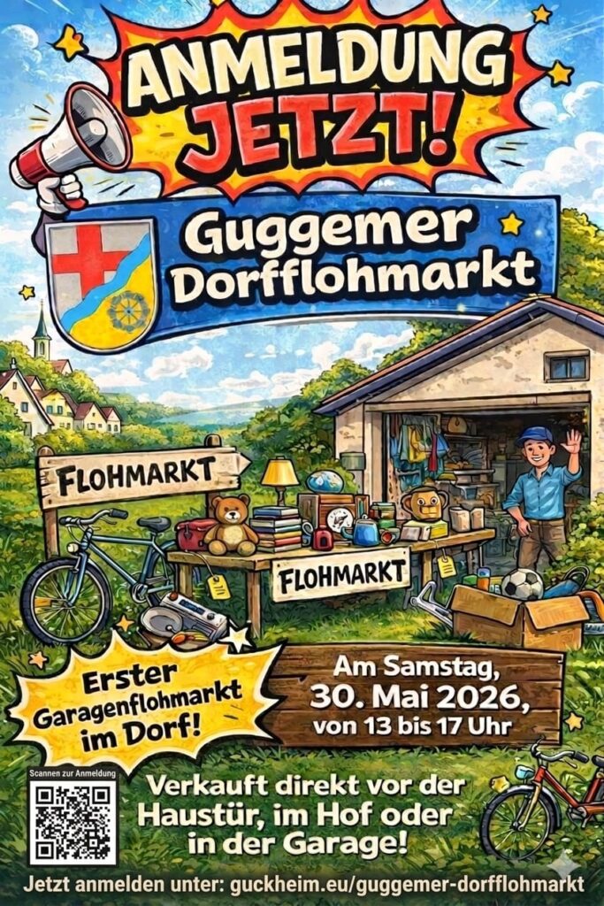 Gemeinsam stöbern, tauschen & plaudern! Am Samstag, 30. Mai 2026, von 13 bis 17 Uhr soll unser erster Dorfflohmarkt als “Garagenflohmarkt” stattfinden Jeder, der mitmachen möchte, verkauft direkt vor der