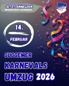 Die 5. Jahreszeit wirft Ihre Schatten voraus und wir freuen uns, , wenn Ihr am Samstag, dem 14.02.2026, am Karnevalsumzug des KCEG Blau-Weiß Guckheim wieder teilnehmen möchtet. Beginn der Veranstaltung